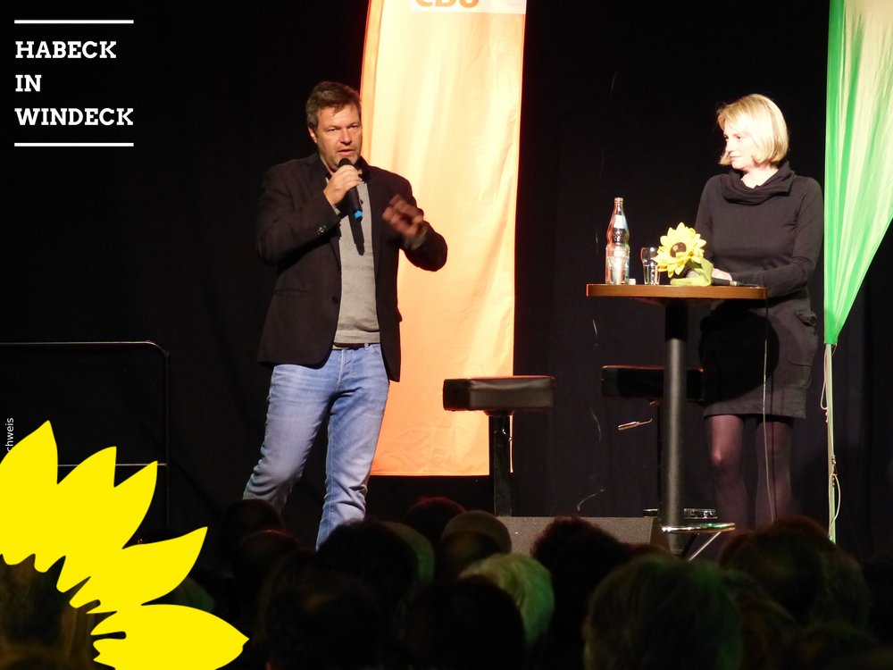 Robert Habeck war eigens aus Berlin angereist, um Alexandra Gauß in ihrem Wahlkampf um das Windecker Rathaus zu unterstützen. Großen Respekt zollte der Bundesvorsitzende von Bündnis 90 / Die GRÜNEN den Unterstützerparteien CDU und FDP dafür, dass sie sich bereits im Vorhinein für die grüne Kandidatin entschieden haben.